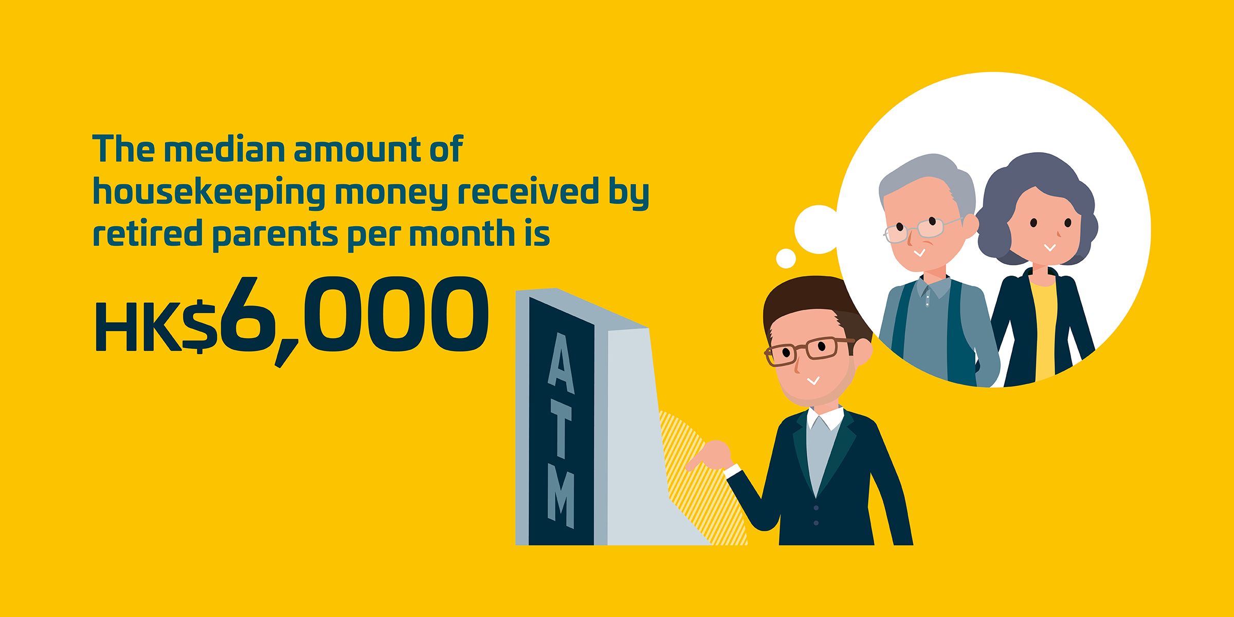 Sun Life’s latest survey on the attitudes and patterns of paying and receiving housekeeping money between two generations. The survey revealed that the median amount of housekeeping money received per month is HK$6,000. As such, retired parents are not very satisfied with the amount of housekeeping money received, with score just 6.9 out of 10. About 40% of retired parents said they felt ashamed to ask for housekeeping money from their children.