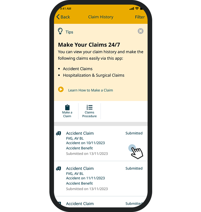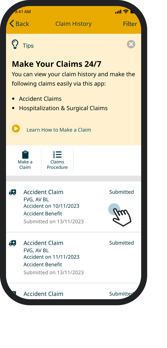 If the total claim amount exceeds HKD8,000, please submit an eClaim first and provide the original documents in person or by mail to: