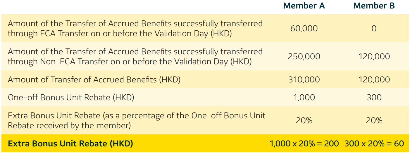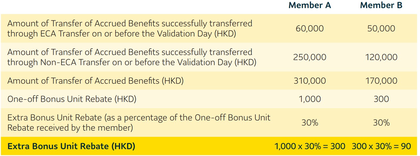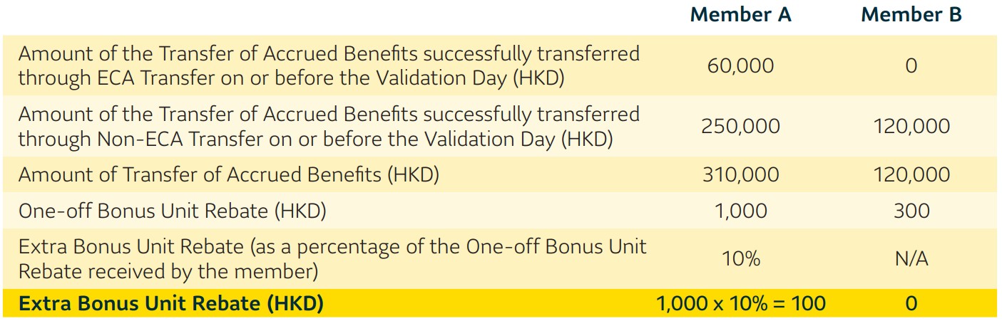“Relevant Members” refers to the members who completed and submitted the “Enjoy Bonus Together” Program Application Form^ together and applied for the Transfer of Accrued Benefits during the Promotion Period.