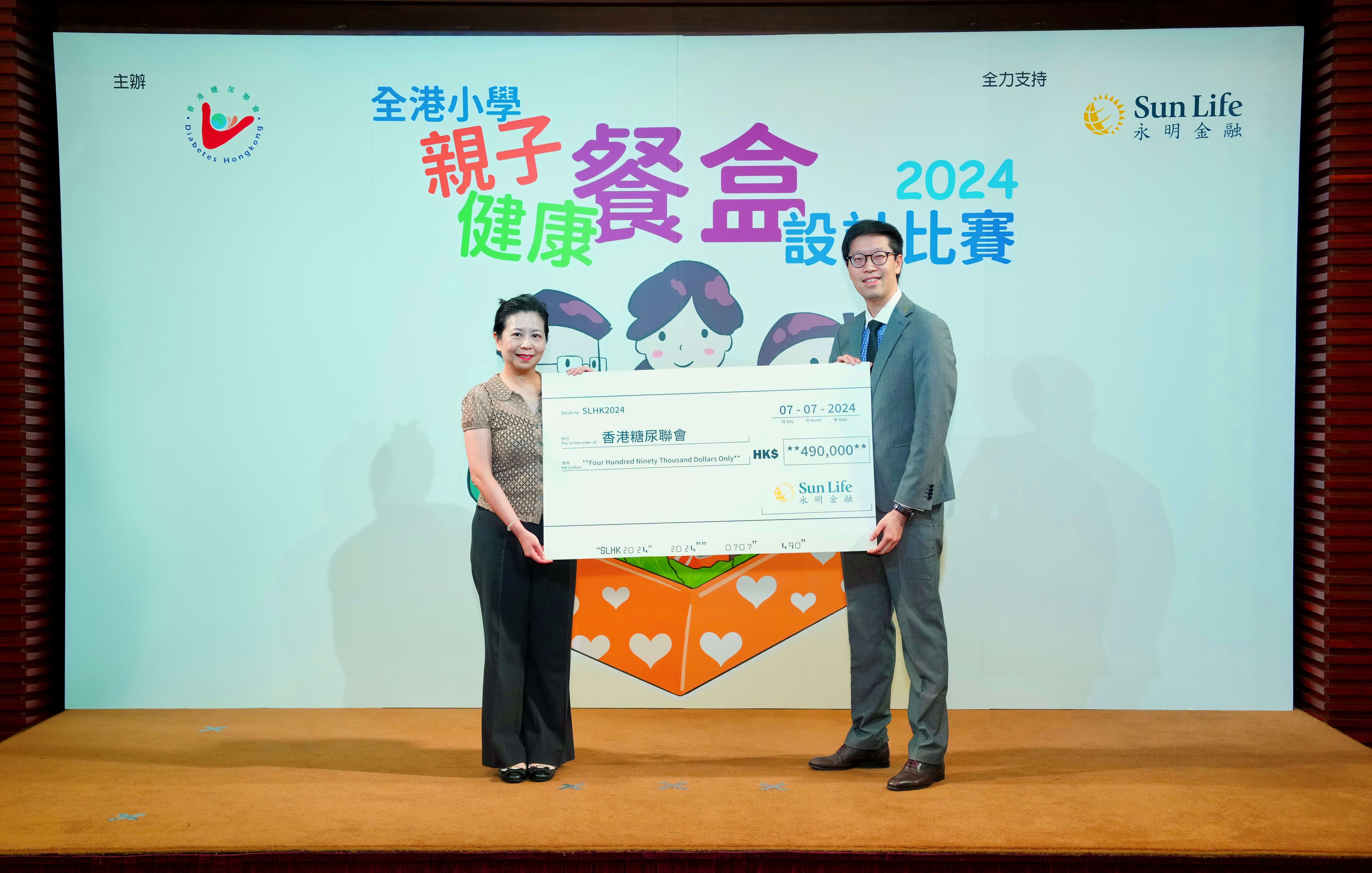 [2024年 7月8日 - 香港] Sun Life永明今天宣布再度支持香港糖尿聯會,向機構捐出490,000港元贊助「全港小學親子健康餐盒設計比賽」,藉此善舉進一步推動社會關注糖尿病,積極推廣預防糖尿病的訊息。Sun Life永明多年來與香港糖尿聯會攜手合作,透過不同社區活動推廣預防糖尿病,以及喚起大眾對建構健康生活的關注,致力建構一個身心健康的社會。
