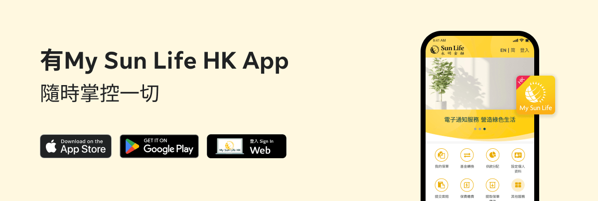 上述產品列表或會不時變更並不作另行通知,上述服務是否適用於新產品將因應產品特色及 Sun Life 永明決策而定。歡迎前往www.sunlife.com.hk探索更多產品資訊。