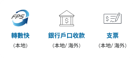我們提供多種收款方式以迎合身處本地及海外客戶的需要:
