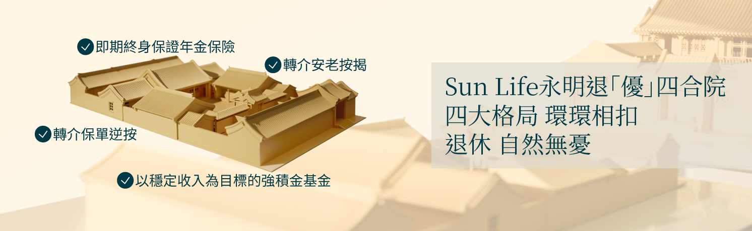註:資料截至2026年1月31日。本公司為香港人壽保險及強積金業界唯一一間公司同時提供上述4大退休規劃。*保單逆按計劃及安老按揭計劃由香港按揭證券有限公司之全資附屬機構香港按證保險有限公司營運,計劃須受有關條款及細則約束,詳情可瀏覽 https://www.hkmc.com.hk/chi/。