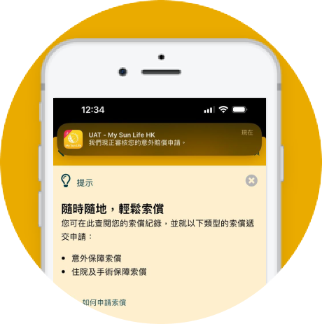 每次索償狀況有更新,我們將發送推送通知,一按即能轉至索償紀錄頁面