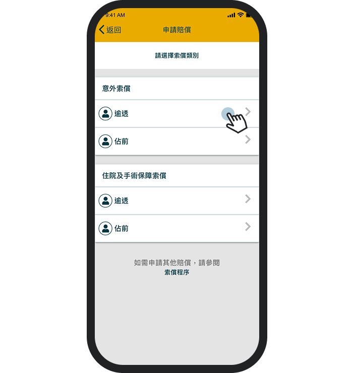 選擇「意外索償」受保人