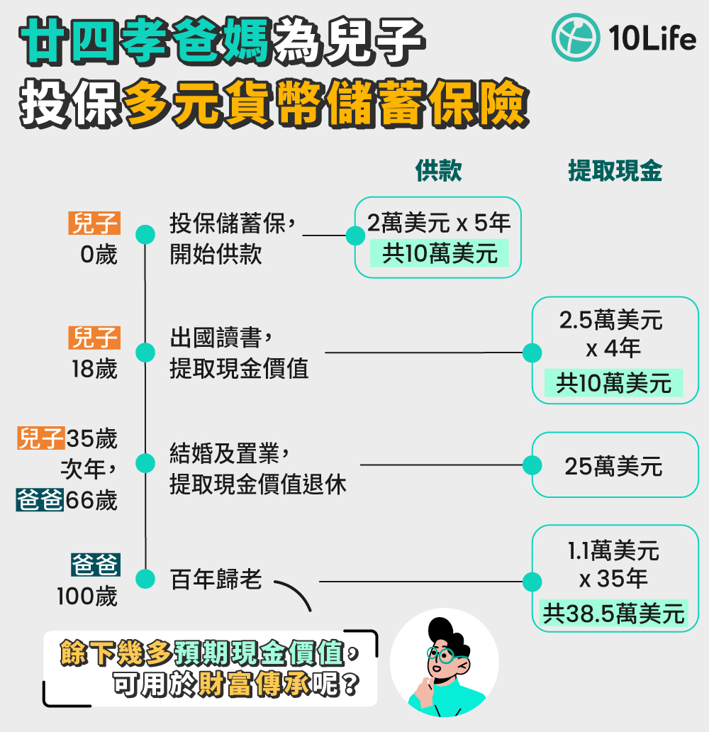 圖:廿四孝爸媽為兒子投保多元貨幣儲蓄保險