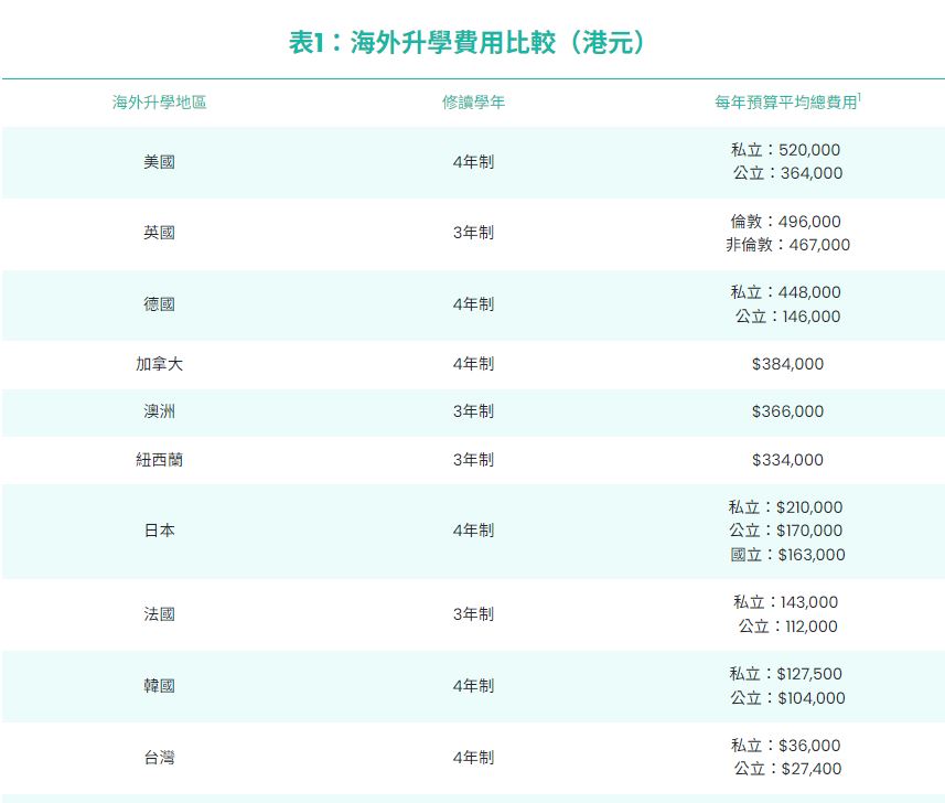 [子女教育基金] 為外國留學作準備 附海外升學費用表